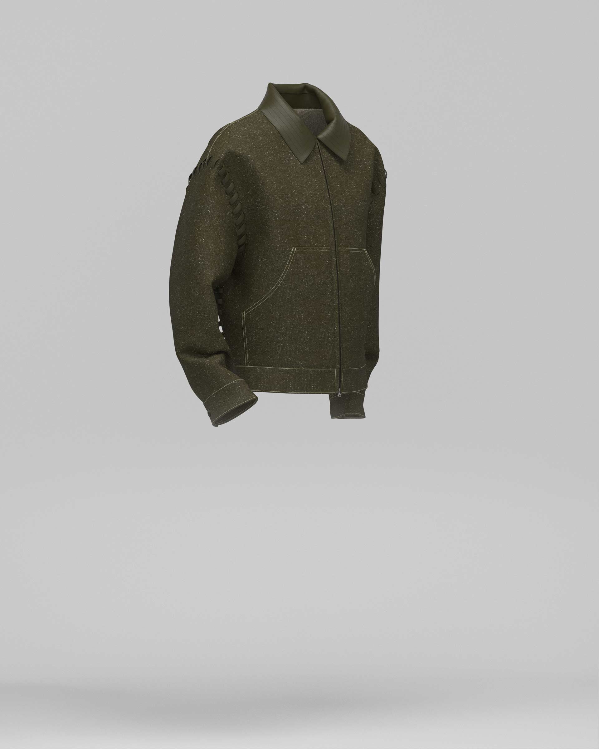 The result is a technical and sophisticated jacket that merges sportswear functionality with material research, transforming denim tradition into a contemporary and sustainable manufacturing project.