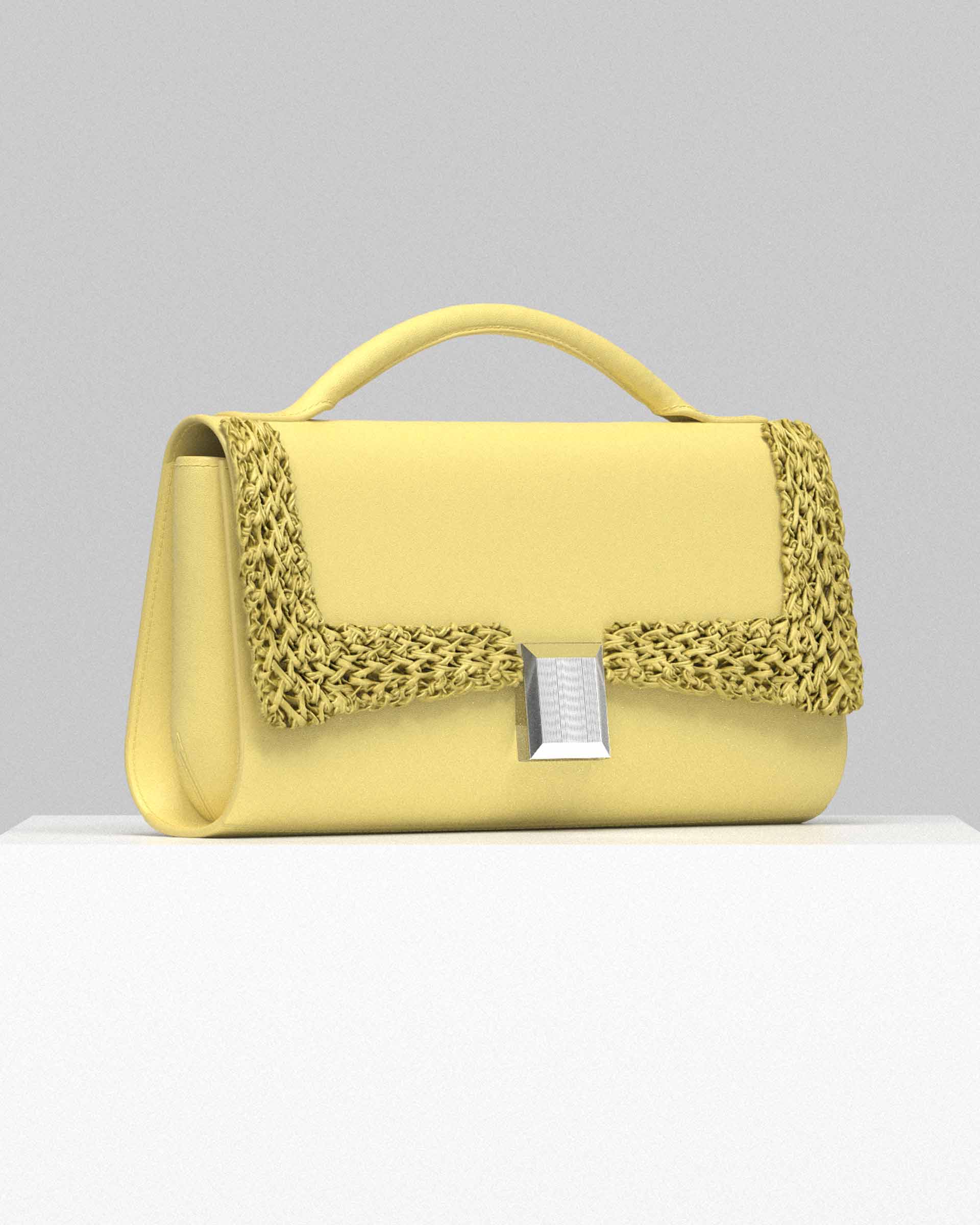 The tape is then hand-woven by RILIEVI directly onto the body of the bag, creating a decorative weave that highlights and defines the flap.